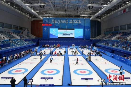 4月16日,北京,民眾在國家游泳中心體驗冰壺運(yùn)動。當(dāng)日,國家游泳中心重新面向公眾開放,并開啟冬奧文化大眾體驗季,民眾可在冬奧會原有設(shè)施、燈光、大屏、景觀等環(huán)境下,感受冬奧和冰壺文化的氛圍。中新社記者 崔楠 攝