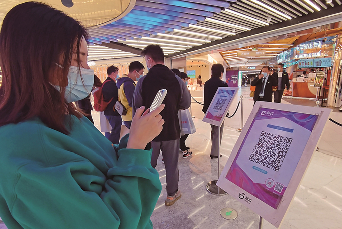 南京市民掃“場所碼”進(jìn)入購物中心