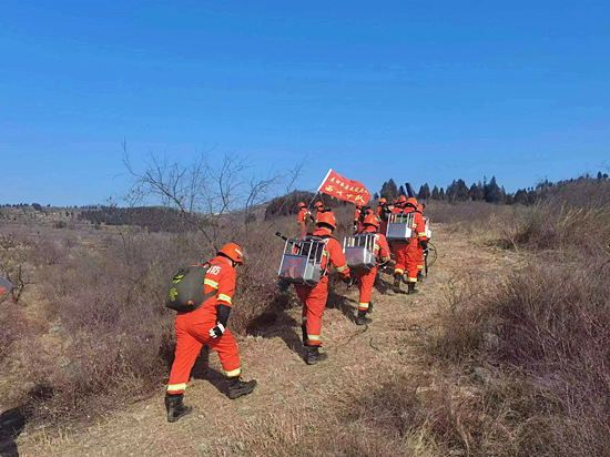 涉縣森林草原救援大隊(duì)進(jìn)行山林巡護(hù)。邯鄲市應(yīng)急管理局供圖