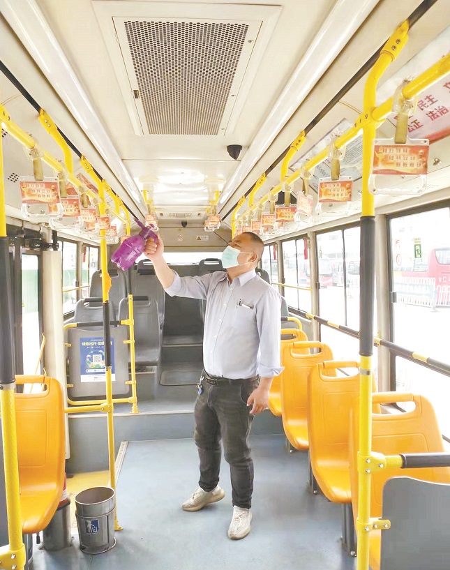 閑不住的柴曉軍總是自己動手,對人群接觸比較密集的扶手、座椅、投票箱、刷卡機等部位進行重點消毒,提前開窗通風,確保給乘客提供干凈、安全的乘車環(huán)境。作為一名共產(chǎn)黨員,他始終發(fā)揮先鋒模范帶頭作用,積極向乘客普及防疫知識,同時提供線路咨詢、熱心幫扶等服務(wù),盡最大努力按照規(guī)范謹慎操作,讓乘客放心。