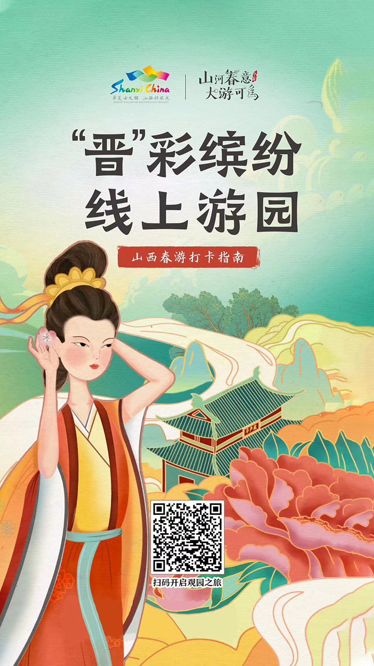 人民網(wǎng)太原4月20日電(桑莉媛)花開晉染、珍味晉有、芳華晉藝、匠心晉展。近日,山西省文化和旅游廳策劃推出了《晉彩繽紛·線上游園》互動H5,以四大板塊來展示山西春日之美,邀廣大網(wǎng)友一起線上游園,云賞山西好風光!