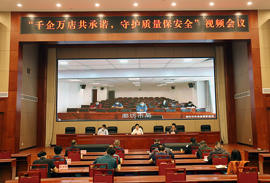 “千企萬(wàn)店共承諾 守護(hù)質(zhì)量保安全”視頻會(huì)議現(xiàn)場(chǎng)。 河北省市場(chǎng)監(jiān)管局供圖