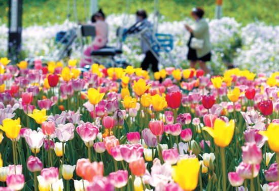 昨天,三三兩兩的游人漫步在世界花卉大觀園的郁金香花海中,感受暮春時(shí)節(jié)的色彩斑斕。園內(nèi)37種近20萬(wàn)株郁金香,正在陸續(xù)開放。世界花卉大觀園還將舉辦首屆郁金香插花花藝大賽,貼近市民家庭園藝需求。 本報(bào)記者 劉平攝