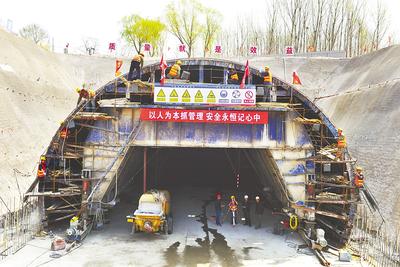 國道G102線市區(qū)段改建工程角山隧道明洞襯砌施工現(xiàn)場(chǎng),正在緊張施工。 本組照片由河北日?qǐng)?bào)記者孫也達(dá)攝