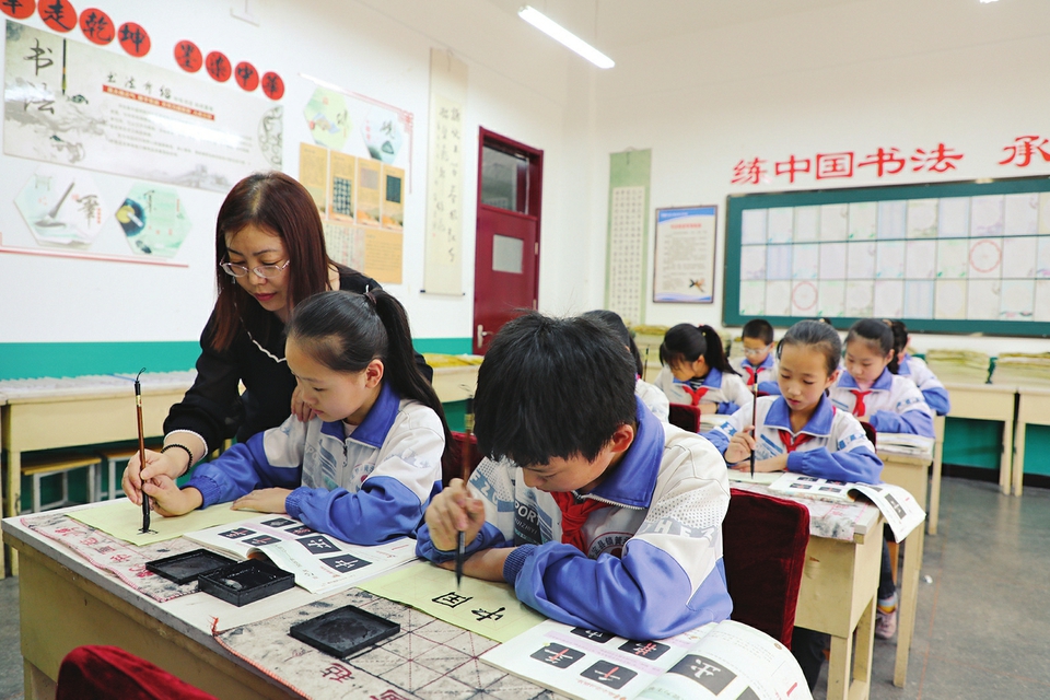 平定縣鎖簧示范小學(xué)堅持把“練中國書法、承傳統(tǒng)文化”的理念貫穿于教書育人全過程,2021年把書法教育納入課后延時服務(wù)。張春林攝