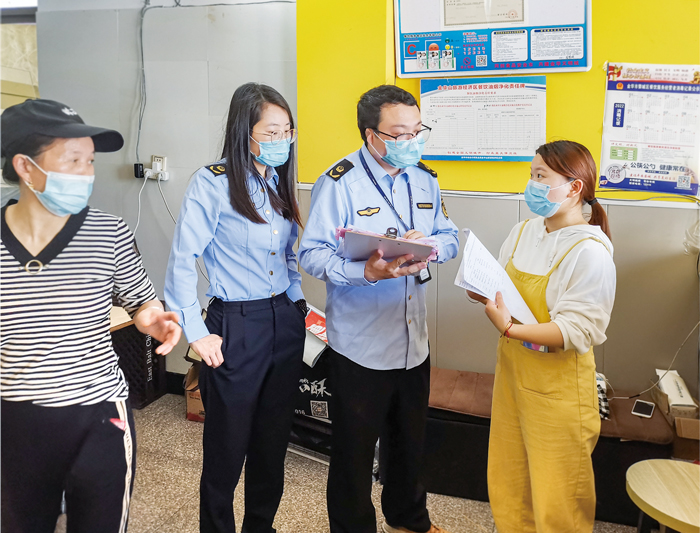 4月26日,金華婺城區(qū)市場(chǎng)監(jiān)管局羅店所工作人員來到轄區(qū)內(nèi)餐飲經(jīng)營(yíng)戶檢查復(fù)工復(fù)產(chǎn)情況,并提示商戶落實(shí)上級(jí)防疫相關(guān)規(guī)定。羅店鎮(zhèn)由管控區(qū)調(diào)整為防范區(qū)后,該所加強(qiáng)對(duì)轄區(qū)餐飲經(jīng)營(yíng)戶的巡查,要求商戶督促顧客掃防疫碼,檢查店內(nèi)食品原料及預(yù)包裝食品的保質(zhì)期、消毒日期,及時(shí)清理臨保過保的食品等,實(shí)現(xiàn)轄區(qū)餐飲行業(yè)有序復(fù)工復(fù)產(chǎn)。(吳潮宏)