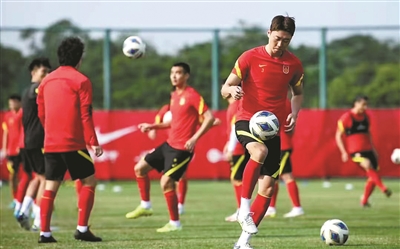 自迪拜杯國際足球錦標(biāo)賽戰(zhàn)罷,U23國家隊(duì)就一直在??谶M(jìn)行隔離備戰(zhàn)。本場(chǎng)比賽中,除了從國家隊(duì)前來馳援的張玉寧、張琳芃和吳曦三名超齡球員外。另外兩名適齡球員朱辰杰和戴偉浚也終于得以與全隊(duì)一起進(jìn)行比賽。