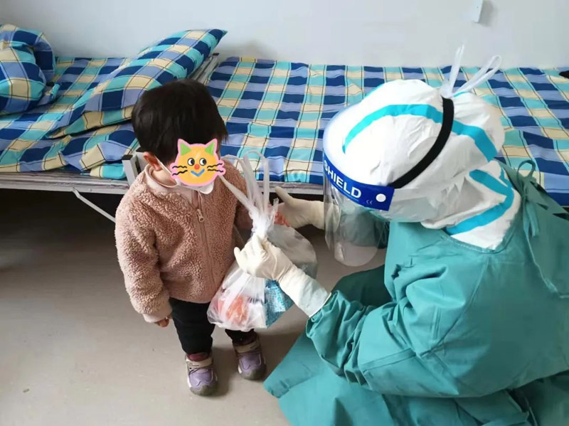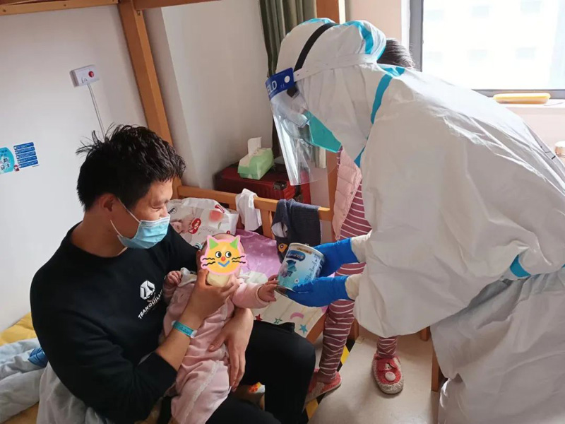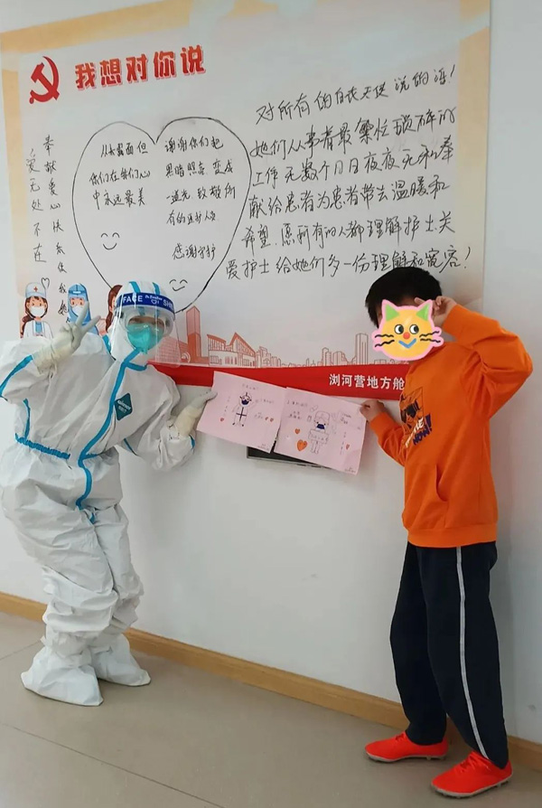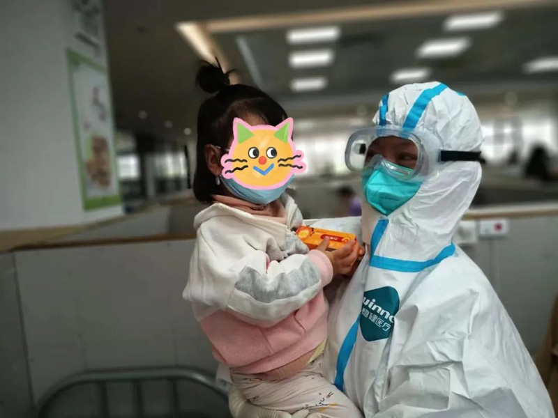 低齡患兒需要奶粉和尿不濕,有的家庭來方艙前帶的不多,“大白”們還專門籌集了一批母嬰用品給他們。“對患兒來說,加強(qiáng)心理疏導(dǎo)和陪伴是很重要的,如果患兒是陽性,陪護(hù)人員是陰性的話,只要簽署承諾書,就可以進(jìn)親子艙陪護(hù),解決患兒分離焦慮?!庇崃止鸾榻B道。