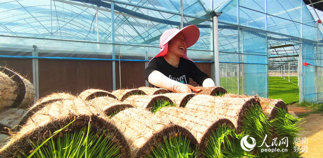 長沙市望城區(qū)的一位種糧大戶正在搬運秧苗。劉賓攝