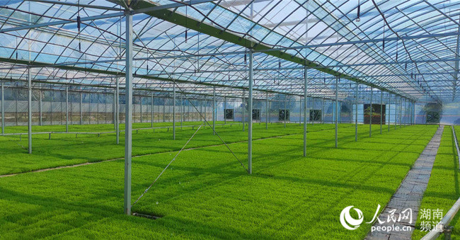 位于長沙市望城區(qū)茶亭鎮(zhèn)的創(chuàng)聯(lián)農(nóng)機專業(yè)合作社聯(lián)合社,今年3月份建成投產(chǎn)了智能育秧工廠,40個透明的溫室大棚連成一片,蔚為壯觀。步入大棚內(nèi),只見一盤盤綠油油的機插早稻秧苗長勢正好,分外喜人。