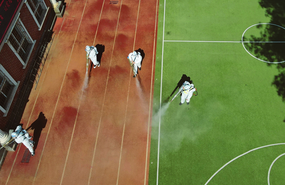 5月6日,為做好校園疫情防控工作,保障師生的身體健康與生命安全,創(chuàng)造良好、健康的生活學(xué)習(xí)環(huán)境,省城雙南小學(xué)邀請藍(lán)天救援隊(duì)走進(jìn)學(xué)校,對(duì)校園進(jìn)行全面消殺,為學(xué)生安全有序返校做好準(zhǔn)備。(記者王瑞瑞攝)