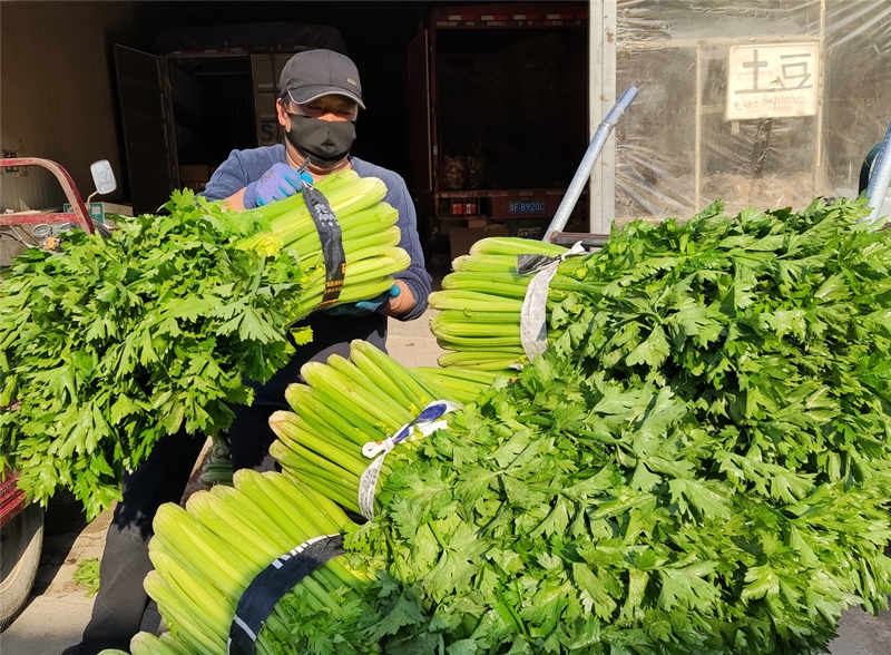 “市場(chǎng)每天大約回貨是40多輛車(chē),蔬菜一百七八十噸,水果一百四五十噸。蘋(píng)果、梨、香蕉等常見(jiàn)水果及白菜、西紅柿、黃瓜等日常蔬菜供應(yīng)充足,可以充分滿足市民需求?!笔袌?chǎng)副經(jīng)理王健說(shuō)。