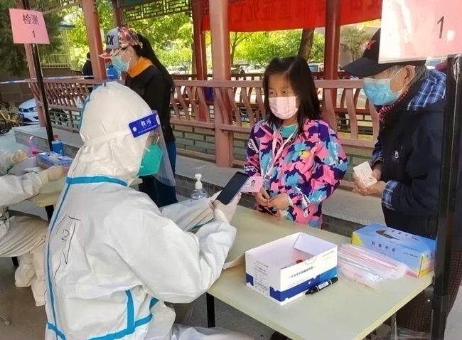“讓我去封控區(qū),我年輕,身體好!”4月26日,紅廟北里小區(qū)部分區(qū)域?qū)嵤┓猓ü埽┛?,朝陽區(qū)八里莊街道社區(qū)衛(wèi)生服務中心護士劉彩麗主動請纓,就這樣,22歲的劉彩麗和其他4名同事承擔起5個單元門的核酸采樣任務。