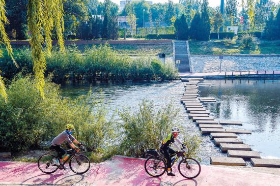 改造后的涼水河豐臺段沿岸綠化與慢行系統(tǒng)融合,為市民休閑騎行增添更多樣的景觀體驗(yàn)。 本報(bào)記者 鄧偉攝