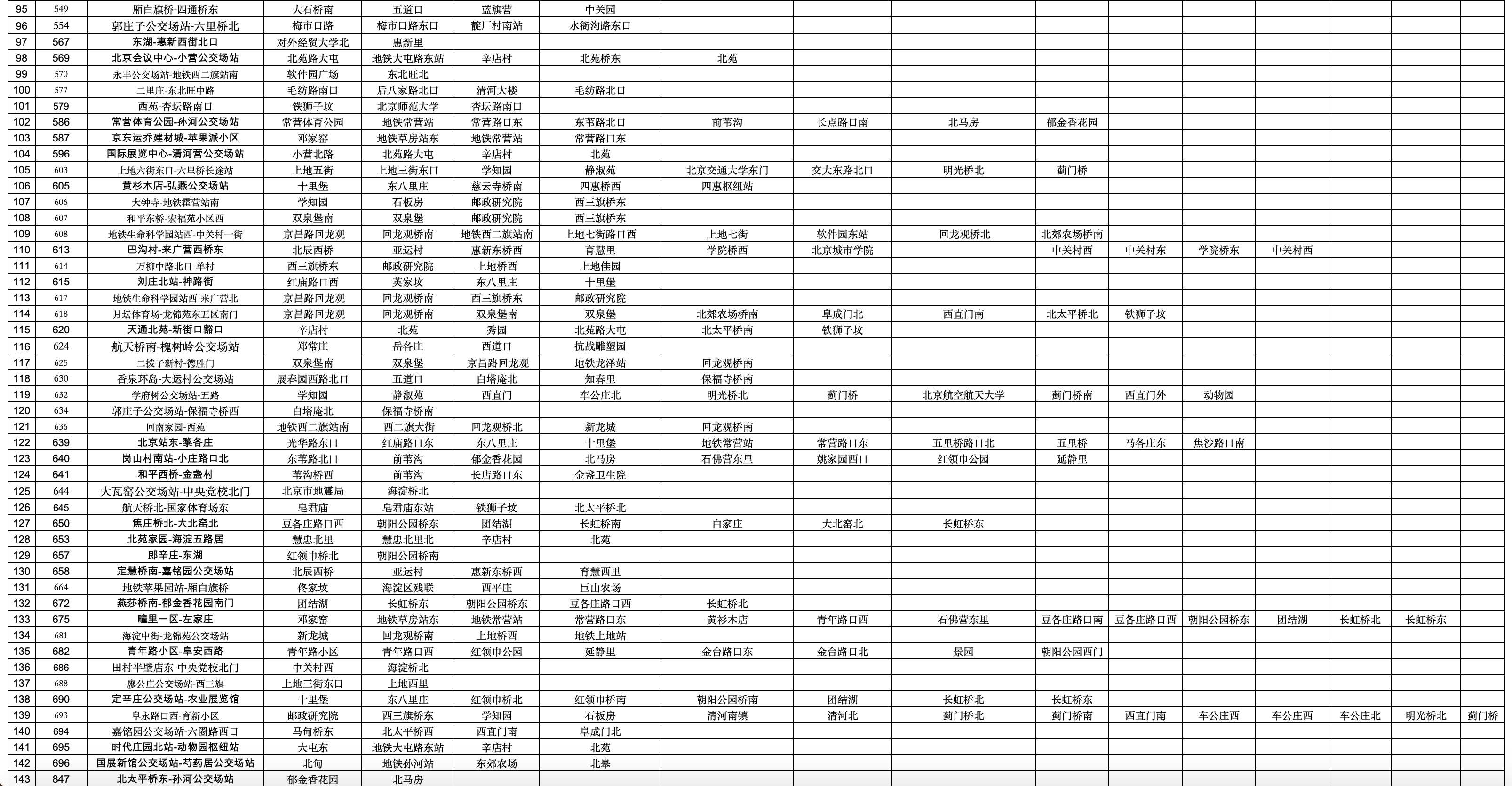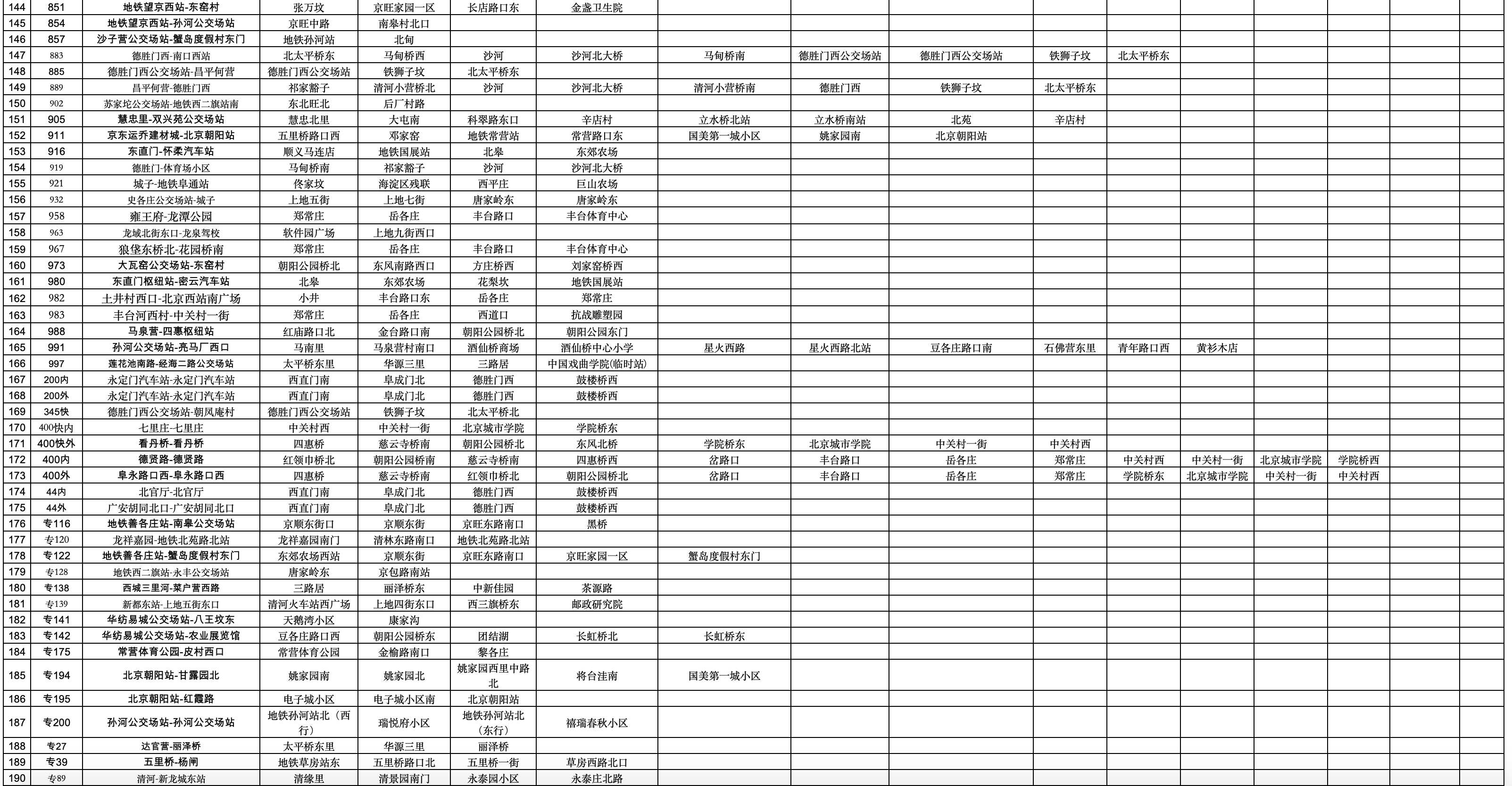 人民網(wǎng)北京5月16日電 (池夢(mèng)蕊)根據(jù)北京市疫情防控需要,為做好精細(xì)精準(zhǔn)防控,自2022年5月17日首班車(chē)起,北京市疫情防控封控區(qū)、管控區(qū)周邊的190條地面公交線路重點(diǎn)車(chē)站和54座地鐵車(chē)站(具體見(jiàn)附表),查驗(yàn)乘客健康碼上車(chē)。后續(xù)將結(jié)合北京市疫情防控措施進(jìn)行動(dòng)態(tài)更新。