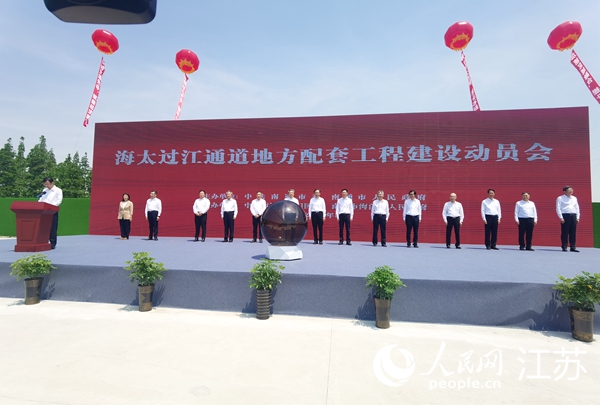 人民網(wǎng)南通5月18日電 (記者王繼亮)18日上午,海太過江通道地方配套工程建設(shè)動員大會在南通海門區(qū)召開,標(biāo)志著此項(xiàng)目正式轉(zhuǎn)入施工籌備階段。南通市委書記、市人大常委會主任王暉宣布項(xiàng)目開工,江蘇省交通運(yùn)輸廳廳長吳永宏,蘇州市副市長施嘉泓,南通市委副書記、市長吳新明等到會并致辭。