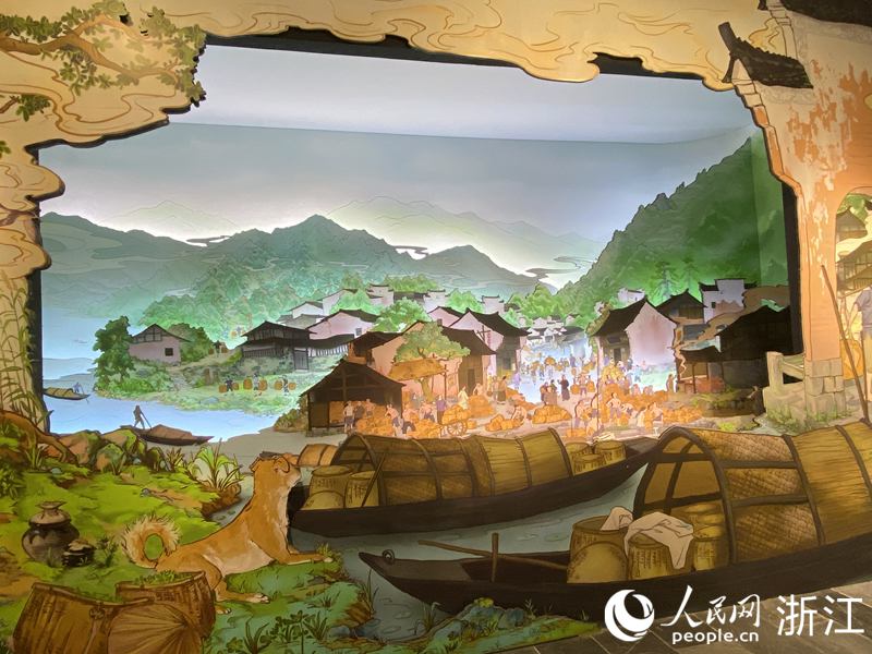 “茶之道”展廳生動(dòng)還原了古代松陽縣集市交易的繁榮盛況。人民網(wǎng) 方彭依夢攝
