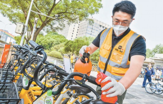 北京:共享單車黨員先鋒隊上崗 已為2萬輛單車配備"共享消毒液"