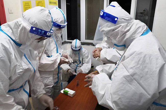 在永定鎮(zhèn)疫情封控區(qū),文旅人變身“大白”,無(wú)論是烈日炎炎還是深夜時(shí)分,他們24小時(shí)堅(jiān)守奮戰(zhàn)在封控小區(qū)抗疫第一線,面對(duì)疫情確診樓,全體領(lǐng)導(dǎo)干部輪流上陣,勇挑重?fù)?dān)。他們參與快遞消殺、物資配送、入戶核酸檢測(cè)、大數(shù)據(jù)流調(diào)、門磁安裝等各項(xiàng)工作,開展“敲門行動(dòng)”,爭(zhēng)創(chuàng)“五大員”,爭(zhēng)當(dāng)物資配送“服務(wù)員”、核酸檢測(cè)“查驗(yàn)員”、數(shù)據(jù)排查“流調(diào)員”、夜間值守“保安員”、防疫前線“戰(zhàn)斗員”。截止到目前,門頭溝區(qū)文旅局共組織干部疫情下沉400余人次,下沉人員占全單位干部職工比重高達(dá)90%以上。