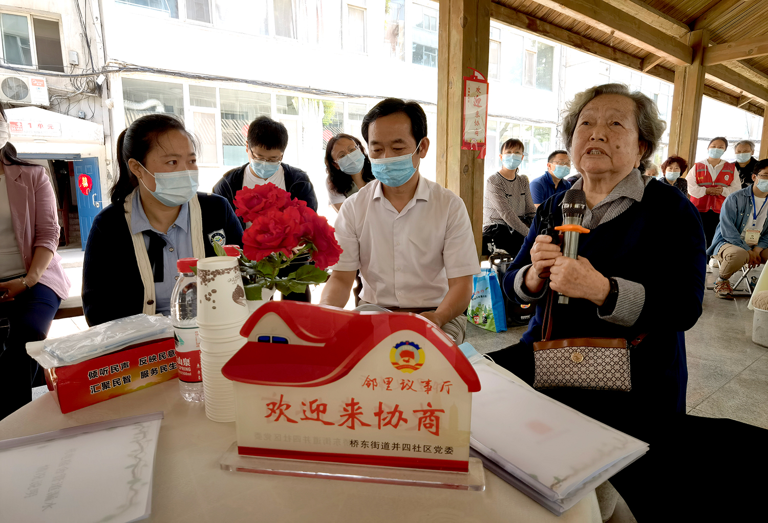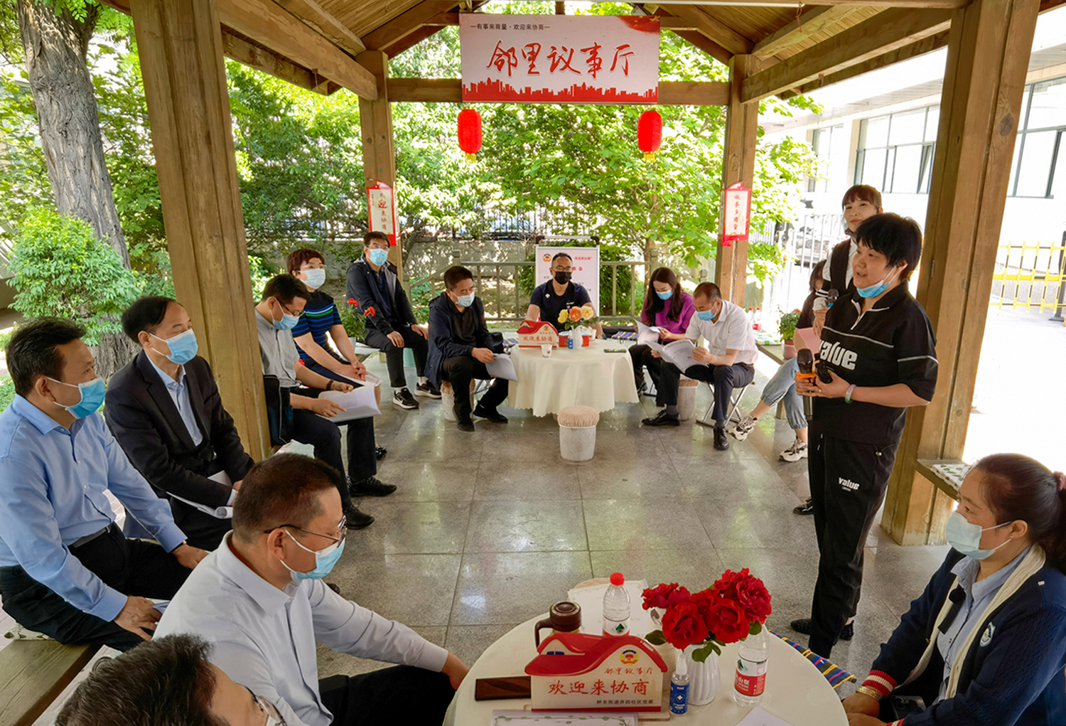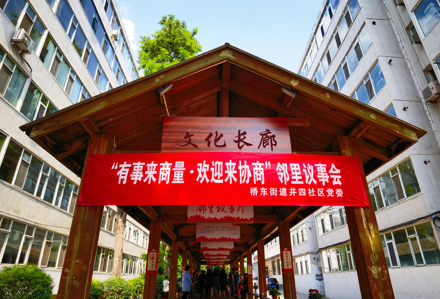 初夏。太原市迎澤區(qū)橋東街道并四社區(qū)新生里89號(hào)院,文化長(zhǎng)廊里支起了三張“議事桌”。兩側(cè)長(zhǎng)廊不夠坐,前排“見(jiàn)縫插針”擺上了小馬扎,來(lái)自街道社區(qū)、物業(yè)、居民和政協(xié)委員等各方面的代表圍坐在一起,“鄰里議事會(huì)”開(kāi)場(chǎng)了。