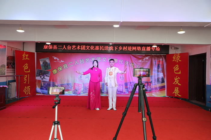 今年以來,受疫情影響不能線下聚集觀演,康??h新時(shí)代文明實(shí)踐中心指導(dǎo)二人臺(tái)藝術(shù)團(tuán)開始嘗試用手機(jī)直播的形式,通過“線上”二人臺(tái)表演將最新的理論政策通過熟悉的“鄉(xiāng)音”送到老百姓身邊。
