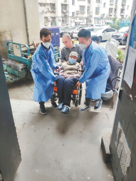 樓道很窄,抬輪椅下來實(shí)在不容易。老人坐在輪椅上,家人在后面扶著,張佳楠?jiǎng)t和另一位志愿者在前面抬。他雙手托著輪椅,腳慢慢地往下尋著臺(tái)階,生怕踩空了。才下了幾級(jí),大家就滿頭大汗了。十多分鐘后,老人終于下樓,得以及時(shí)就醫(yī)治療。