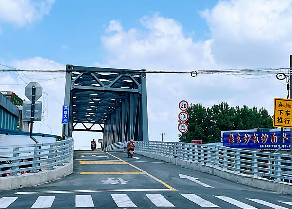 民之所盼,政之所向。2021年4月,通州區(qū)、劉橋鎮(zhèn)兩級政府啟動英雄大橋重建程序,劃撥2800萬元專項資金用于建橋,緊接著5月確定施工方案、6月進(jìn)場施工、12月完成橋墩沉臺施工。今年1月,主橋鋼桁架吊裝完成。