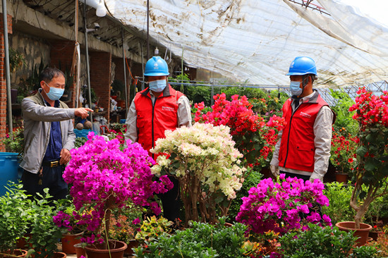 5月25日,冀北承德圍場公司四合永供電所黨員服務(wù)隊隊員到四合永鎮(zhèn)營字村海岱溝鳳利花卉園藝大棚檢查用電設(shè)備。 劉春學(xué)攝