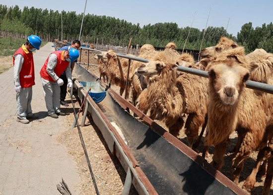 5月31日,國家電網(wǎng)冀北電力唐山“鋼鐵之魂”共產(chǎn)黨員服務(wù)隊隊員來到駱駝專業(yè)合作社檢查用電設(shè)備。 周宇翔攝