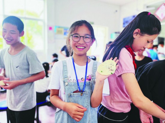 為什么會(huì)讓學(xué)生學(xué)做燒餅?zāi)??校長王國寶這樣解釋:“縉云燒餅的制作技藝是國家級(jí)非物質(zhì)文化遺產(chǎn),讓學(xué)生傳承這項(xiàng)技藝,也能讓他們感受縉云人記憶深處的味道。六年級(jí)的同學(xué)即將畢業(yè),以后他們會(huì)離開縉云展翅高飛,真心希望他們能記住縉云燒餅這個(gè)回家的路標(biāo)?!?/p>