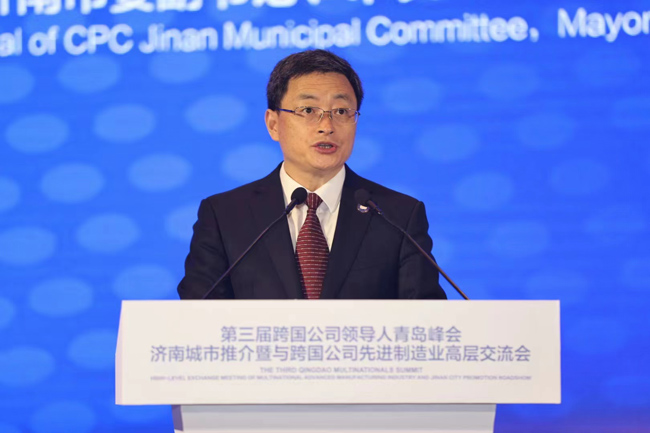 人民網(wǎng)青島6月20日電 6月20日上午,第三屆跨國公司領(lǐng)導(dǎo)人青島峰會舉辦期間,濟(jì)南市舉辦城市推介暨與跨國公司先進(jìn)制造業(yè)高層交流會。近100家世界500強(qiáng)、跨國公司、知名企業(yè)、商協(xié)會機(jī)構(gòu)及駐濟(jì)重點(diǎn)企業(yè)的150余名嘉賓齊聚一堂,共商合作,共謀發(fā)展。山東省委常委、市委書記劉強(qiáng)出席,市委副書記、市長于海田出席并致辭。