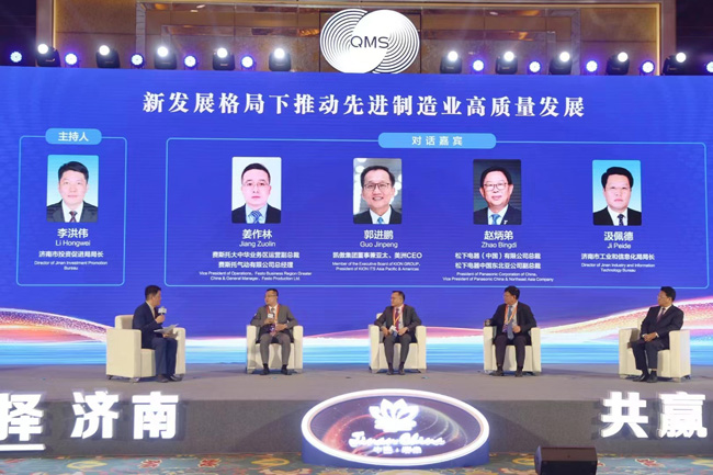 在對話交流階段,費(fèi)斯托大中華業(yè)務(wù)區(qū)運(yùn)營副總裁姜作林,凱傲集團(tuán)董事兼亞太、美洲CEO郭進(jìn)鵬,松下電器中國東北亞公司副總裁趙炳弟,濟(jì)南市工業(yè)和信息化局局長汲佩德、濟(jì)南市投資促進(jìn)局局長李洪偉等,圍繞“新發(fā)展格局下推動先進(jìn)制造業(yè)高質(zhì)量發(fā)展”展開了對話交流。