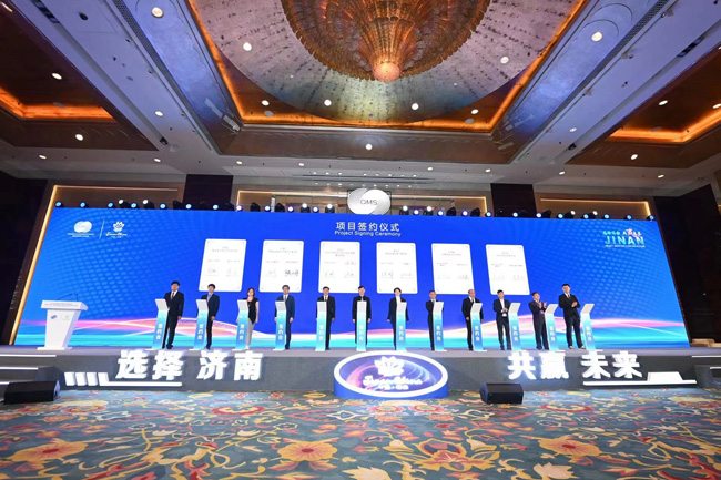 本次峰會期間,濟(jì)南市共有19個項(xiàng)目簽約。其中,在省主會場共簽約7個項(xiàng)目,項(xiàng)目總投資額約9.71億美元,合同外資2.78億美元,涉及新材料、新能源、新一代信息技術(shù)等領(lǐng)域。在濟(jì)南城市推介活動現(xiàn)場,共簽約12個項(xiàng)目,總投資額約8.54億美元,合同外資3.85億美元,涉及高端裝備制造、現(xiàn)代農(nóng)業(yè)、新能源、類金融等領(lǐng)域,其中制造業(yè)類項(xiàng)目7個。