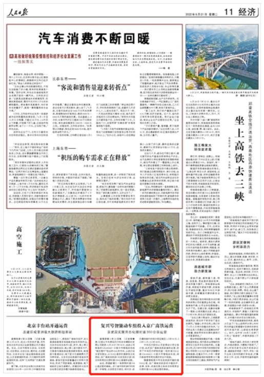人民日?qǐng)?bào)點(diǎn)贊青島中車(chē)四方:智能復(fù)興號(hào)在京武段開(kāi)跑時(shí)速350公里
