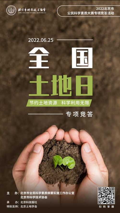 據(jù)了解,“節(jié)約土地資源 科學(xué)利用無限”專項(xiàng)競(jìng)答活動(dòng)是2022北京市公民科學(xué)素質(zhì)大賽推出的系列專項(xiàng)競(jìng)答之一。北京市公民科學(xué)素質(zhì)大賽形式多樣,聯(lián)合北京市綱要辦成員單位、市屬學(xué)會(huì)、高校科協(xié)等開展系列專題競(jìng)答,進(jìn)一步貫徹落實(shí)《北京市全民科學(xué)素質(zhì)行動(dòng)規(guī)劃綱要(2021—2035年)》,著力發(fā)揮“首都科普”品牌活動(dòng)的示范引領(lǐng)作用,開創(chuàng)熱愛科學(xué)、崇尚創(chuàng)新的科學(xué)素質(zhì)建設(shè)新局面。