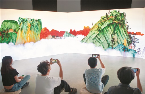 人工智能山水圖、可實時互動的抽象畫、沉浸式體驗的5G山水畫卷……眾多充盈“黑科技”元素的藝術作品,打造出充滿古意而又嶄新的文化盛宴,帶領觀眾體驗沉浸式和流動式的藝術畫卷,感受“有聲、有色、有全景”的超高清沉浸式視聽體驗。