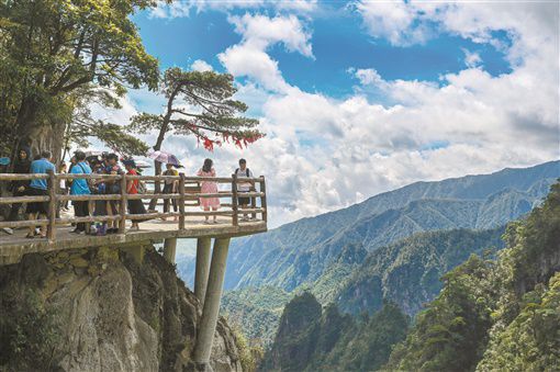 6月26日,宜章縣莽山五指峰景區(qū),游客暢游其中。隨著疫情形勢(shì)穩(wěn)定,當(dāng)?shù)赝瞥鍪钇诼糜蔚认盗袃?yōu)惠政策和活動(dòng),旅游市場(chǎng)日漸升溫。記者 郭立亮 通訊員 鄧加亮 攝影報(bào)道