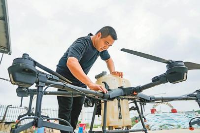 中江縣金穗源糧食專業(yè)合作社理事長常滔在做無人機起飛前的準備工作。四川日報全媒體記者 李強 攝