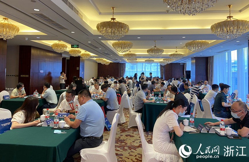 全省產(chǎn)業(yè)鏈山海協(xié)作現(xiàn)場推進(jìn)會暨“意向企業(yè)”走進(jìn)青田活動現(xiàn)場。人民網(wǎng) 方彭依夢攝