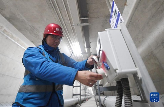 工作人員在雄安新區(qū)容東片區(qū)地下管廊調試物聯(lián)網(wǎng)設備(2022年3月30日攝)。新華社記者 朱旭東 攝