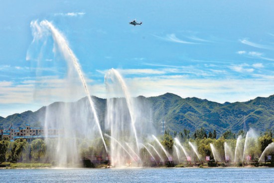 36支水槍同時(shí)出水,受災(zāi)區(qū)域的水位快速下降——“城市綜合排澇”展現(xiàn)了消防救援人員聯(lián)動排水集團(tuán)緊急排險(xiǎn)的能力。 本報(bào)記者 白繼開攝