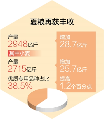 北京師范大學(xué)中國(guó)鄉(xiāng)村振興與發(fā)展研究中心主任張琦表示:“夏糧豐收離不開‘藏糧于地’‘藏糧于技’戰(zhàn)略的全面實(shí)施,今年夏糧播種面積達(dá)3.98億畝,比上年增加138萬畝,夏糧畝產(chǎn)比上年提高2.3公斤,單產(chǎn)提高對(duì)增產(chǎn)的貢獻(xiàn)達(dá)64%?!?/p>