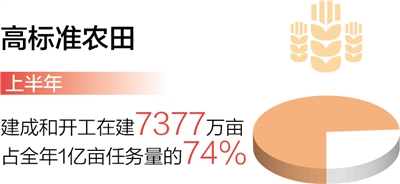 種子耕地農(nóng)機(jī)基礎(chǔ)進(jìn)一步夯實(shí),農(nóng)業(yè)綜合生產(chǎn)能力不斷提升。種業(yè)振興行動(dòng)扎實(shí)推進(jìn)。資源普查任務(wù)進(jìn)度過半,已收集農(nóng)作物種質(zhì)資源11萬份、畜禽遺傳材料6萬份、水產(chǎn)遺傳材料5萬份。開展農(nóng)業(yè)關(guān)鍵核心技術(shù)攻關(guān),首次審定一批綠色、專用和耐鹽堿小麥品種。高標(biāo)準(zhǔn)農(nóng)田建設(shè)加快推進(jìn)。上半年建成和開工在建高標(biāo)準(zhǔn)農(nóng)田7377萬畝,占全年1億畝任務(wù)量的74%。農(nóng)機(jī)裝備條件持續(xù)改善。推進(jìn)機(jī)收減損,小麥機(jī)收損失率控制在2%以內(nèi)。
