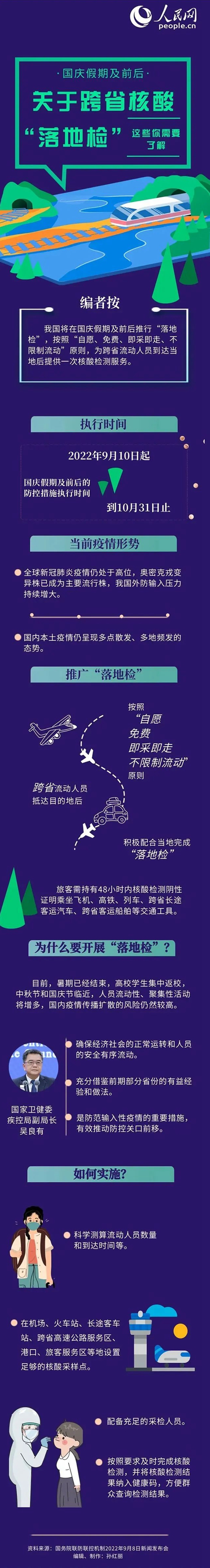 連云港提醒,近期有高中低風險區(qū)旅居史人員、解除隔離后返回目的地的入境人員,以及市外來(返)連人員,提前通過“我的連云港”APP、微信公眾號“來連自助申報”、撥打各縣區(qū)(功能板塊)或各社區(qū)(村)疫情防控報備電話登記信息,主動向所在單位、社區(qū)或酒店進行報備。機場、火車站、汽車客運站、高速公路省界服務區(qū)、港口、公路卡口等設(shè)置核酸采樣點為來(返)連人員提供“落地檢”服務。未進行“落地檢”的,賓館酒店要督促外地來(返)連旅客于入住12小時內(nèi)進行一次核酸檢測;社區(qū)要督促市外來(返)連人員抵連后12小時內(nèi)進行一次核酸檢測。