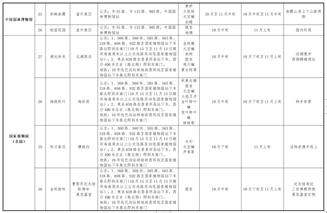 中國(guó)園林博物館的室外展區(qū)秋色正當(dāng)時(shí),黃櫨、火炬樹、元寶槭、雞爪槭等樹種或紅或黃,漸變的色彩扮靚了秋天。除此以外,天壇公園第41屆菊花展已于10月21日開幕,北海公園菊花展將于10月28日至11月13日舉辦,國(guó)家植物園(北園)的菊花展于10月28日閉幕,對(duì)菊花情有獨(dú)鐘的游客朋友可到公園一探究竟。除了傳統(tǒng)的香山賞紅,市公園管理中心發(fā)布了2022年市屬公園彩葉觀賞指南,30處彩葉觀賞打卡地為市民游客在秋季游園增添樂(lè)趣。