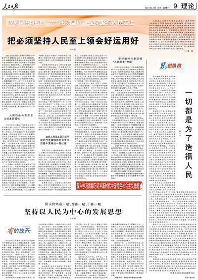 以縣處級以上領(lǐng)導(dǎo)干部為重點在全黨深入開展學(xué)習(xí)貫徹習(xí)近平新時代中國特色社會主義思想主題教育,是貫徹落實黨的二十大精神的重大舉措,對于統(tǒng)一全黨思想、解決黨內(nèi)存在的突出問題、始終保持黨同人民群眾血肉聯(lián)系、推動黨和國家事業(yè)發(fā)展,具有重要意義。學(xué)深悟透習(xí)近平新時代中國特色社會主義思想,必須把握這一重要思想的世界觀、方法論和貫穿其中的立場觀點方法。黨的二十大報告提出了繼續(xù)推進理論創(chuàng)新的科學(xué)方法,即必須堅持人民至上、必須堅持自信自立、必須堅持守正創(chuàng)新、必須堅持問題導(dǎo)向、必須堅持系統(tǒng)觀念、必須堅持胸懷天下。這“六個必須堅持”,是習(xí)近平新時代中國特色社會主義思想的立場觀點方法的重要體現(xiàn)。從今天起,本報推出深刻認識和把握“六個必須堅持”系列理論版。第一期圍繞如何深入學(xué)習(xí)領(lǐng)會“必須堅持人民至上”進行闡述。