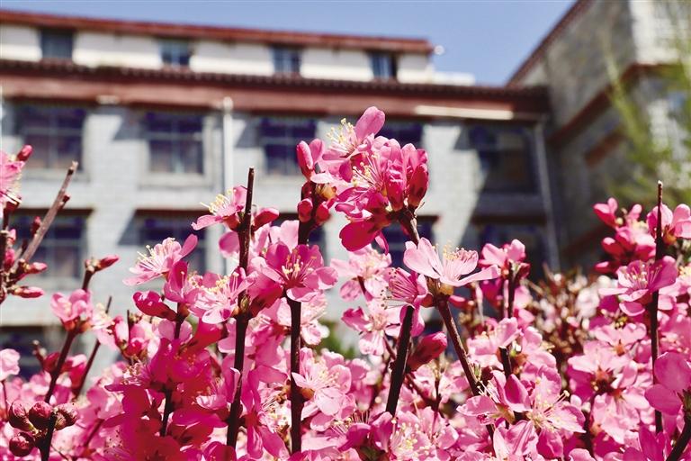 那么,去哪里查收這份“春日限定大禮包”呢?最近幾天,記者的朋友圈都被帕崩崗的美景霸屏了,一波又一波的朋友到這里打卡。除了去帕崩崗賞桃花,更不容錯(cuò)過的一定是拉薩大街小巷以及公園中驚鴻一瞥的美景。宗角祿康公園植被繁茂、古樹較多,一到春季,玫粉色的榆葉梅綻放枝頭,層層花瓣在陽光的照耀下嬌俏動(dòng)人,一樹粉色花朵倒映在幽綠的湖水中,盡顯詩意。此外,緊鄰羅布林卡的羅堆東路也有意想不到的美景,每到這個(gè)季節(jié),紅葉李便會(huì)沿路盛開,淡粉色的花瓣搭配深紅色的花蕊,甚是好看。金珠西路沿途的景色也令人耳目一新,淡粉色的花朵肆意綻放,等紅燈時(shí)的心情因這些花朵變得不再焦灼。