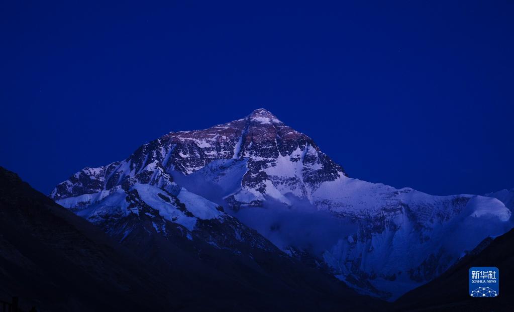 6月4日拍攝的太陽完全落山之后的珠峰。新華社記者 費茂華 攝