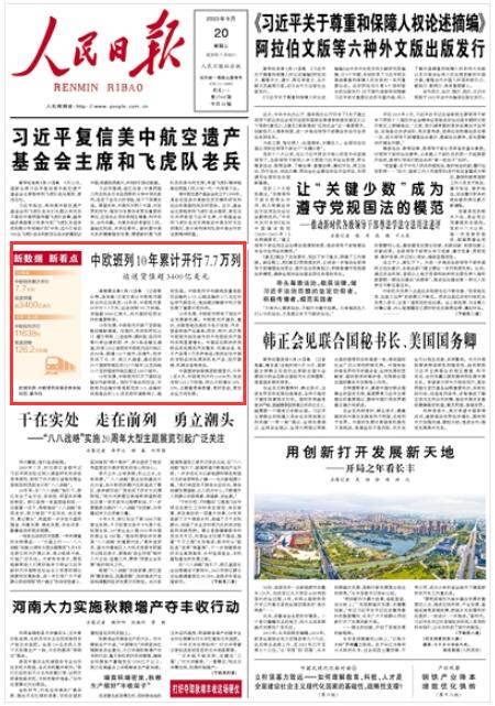 人民日報|中歐班列10年累計開行7.7萬列 運送貨值超3400億美元