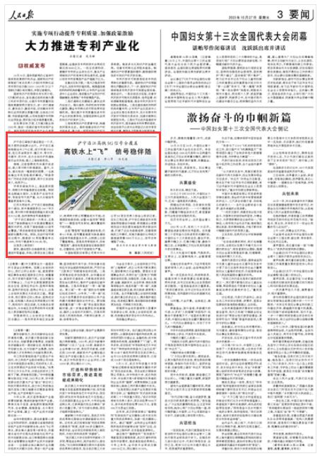 人民日?qǐng)?bào)|滬寧沿江高鐵5G信號(hào)全覆蓋 高鐵水上“飛” 信號(hào)穩(wěn)伴隨